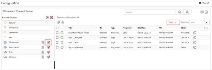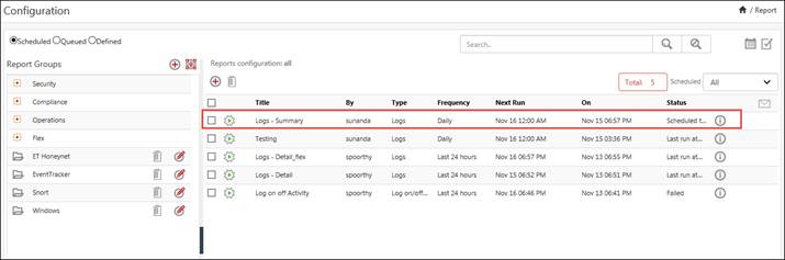 2. To view the respective Security/Operation/Compliance/Flex Reports that are configured, click the respective Report groups.