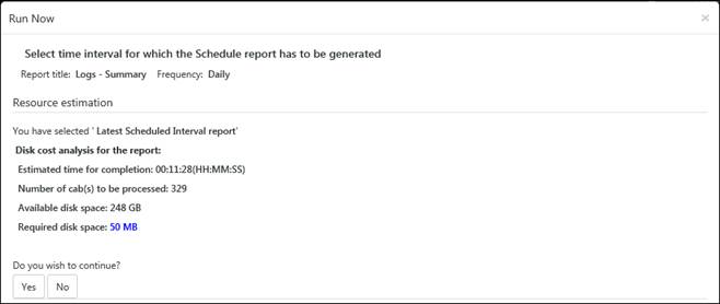 6. Enter/select the required options to generate Scheduled/Queued/Defined reports.
