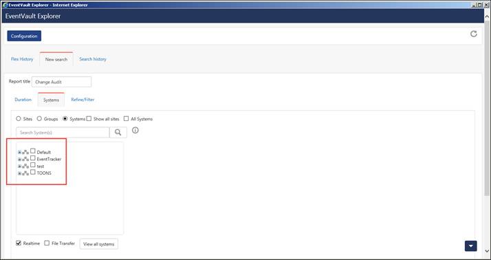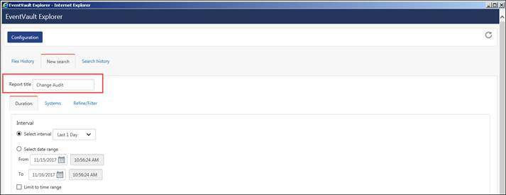 2. Go to New Search tab; enter the Report Title, the Date range/ Time range and also the System Name.