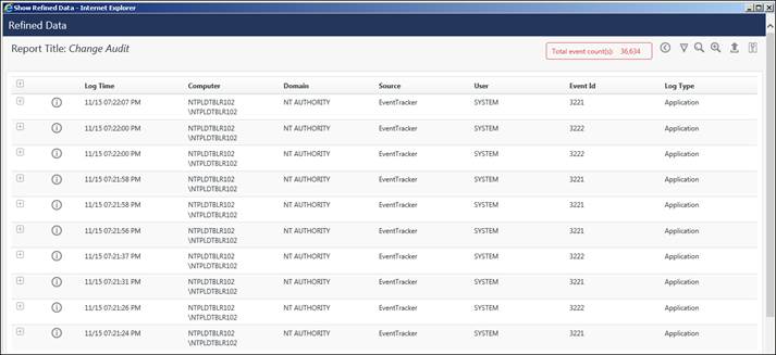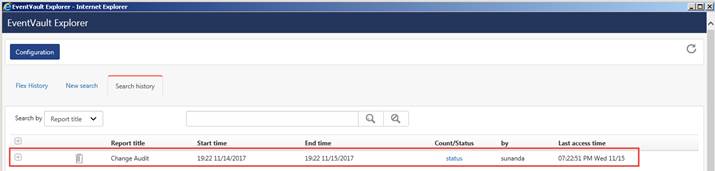 EventTracker displays Search History tab with the result set. By default only 5 searches can be made but the user can increase it by changing the configuration settings (To change Configuration setting, click Configuration hyperlink and set the Max history count).
